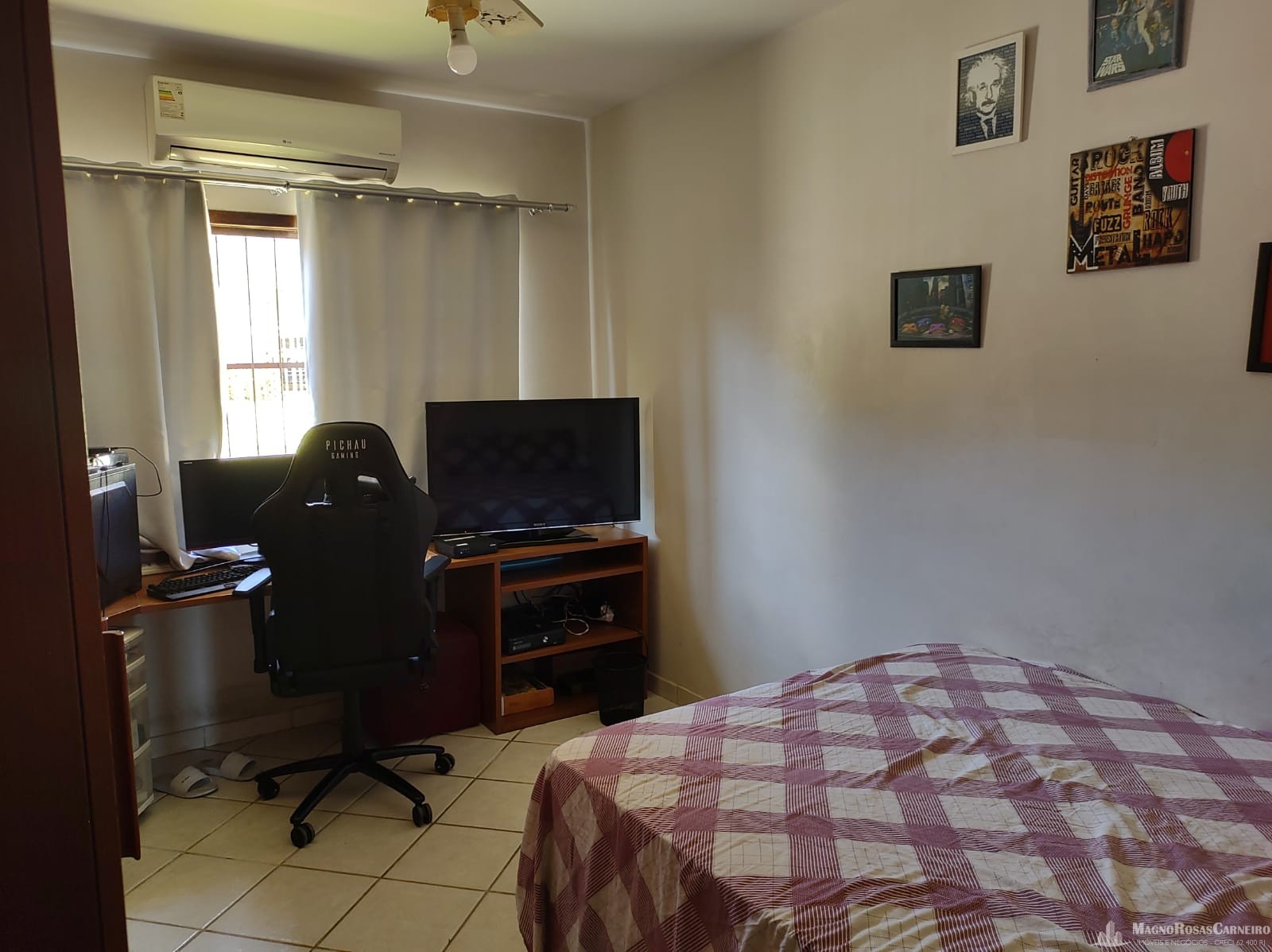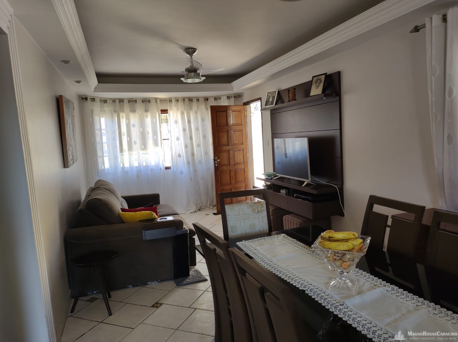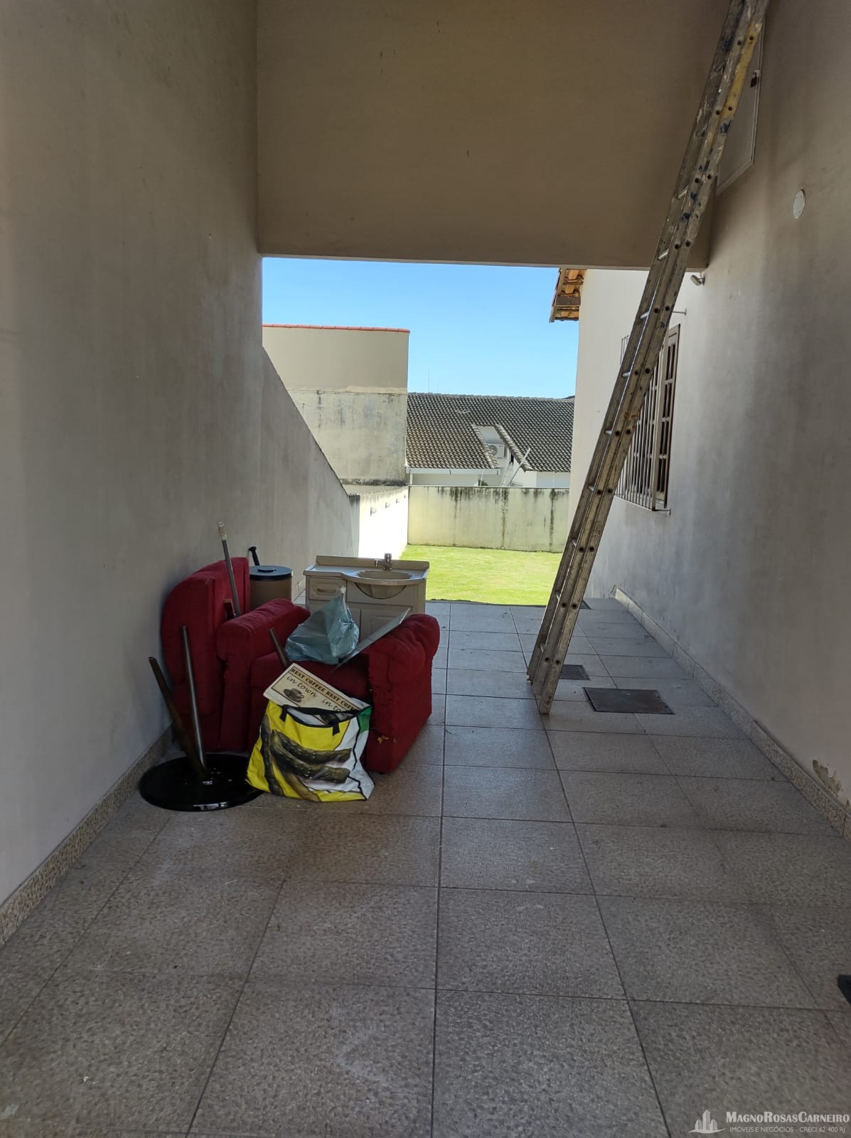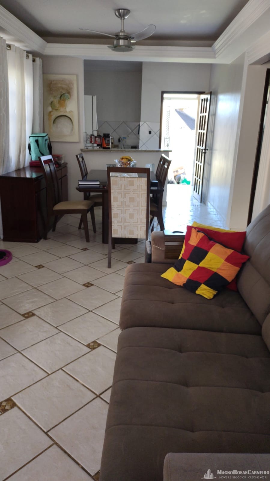 Casa plana no bairro Morada da Colina, próxima ao Colégio CEJA, composta de 3 quartos sendo uma suíte com closet, sala/ cozinha, banheiro social, área de serviço, garagem e uma área grande gramada nos fundos.